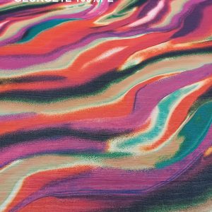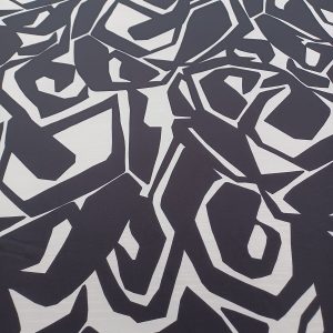 O design do tecido é bastante vívido e abstrato, com um padrão multicolorido que mistura tons de amarelo, azul, verde, roxo, vermelho e branco.Estampado inspirado em formas orgânicas, padrões naturais sobrepostos, criando um visual dinâmico e artístico. -