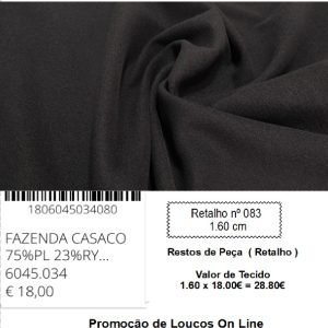 Veludo Armani é um tecido luxuoso e macio, com toque sedoso e ligeiro brilho característico. A viscose confere conforto e caimento fluido, enquanto a seda acrescenta elegância e suavidade extra.
