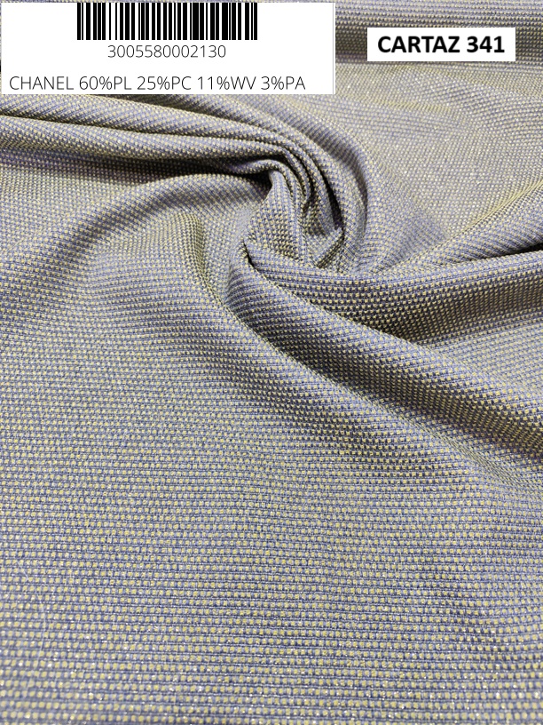 Esta mistura de fibras dá origem a um tecido tipo Chanel, bastante utilizado no vestuário feminino, especialmente em: