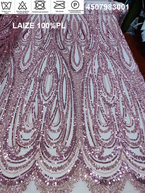 Tecido em Guipur para a Elegância de um Vestido de Festa, com a particularidade á colocação de base em qualquer cor, dando o requinte sofisticado